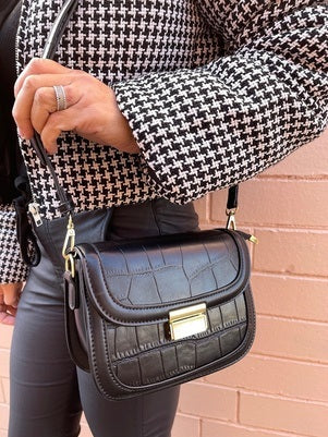 TRIPP - Two Toned Patterned Saddle Bag - Black