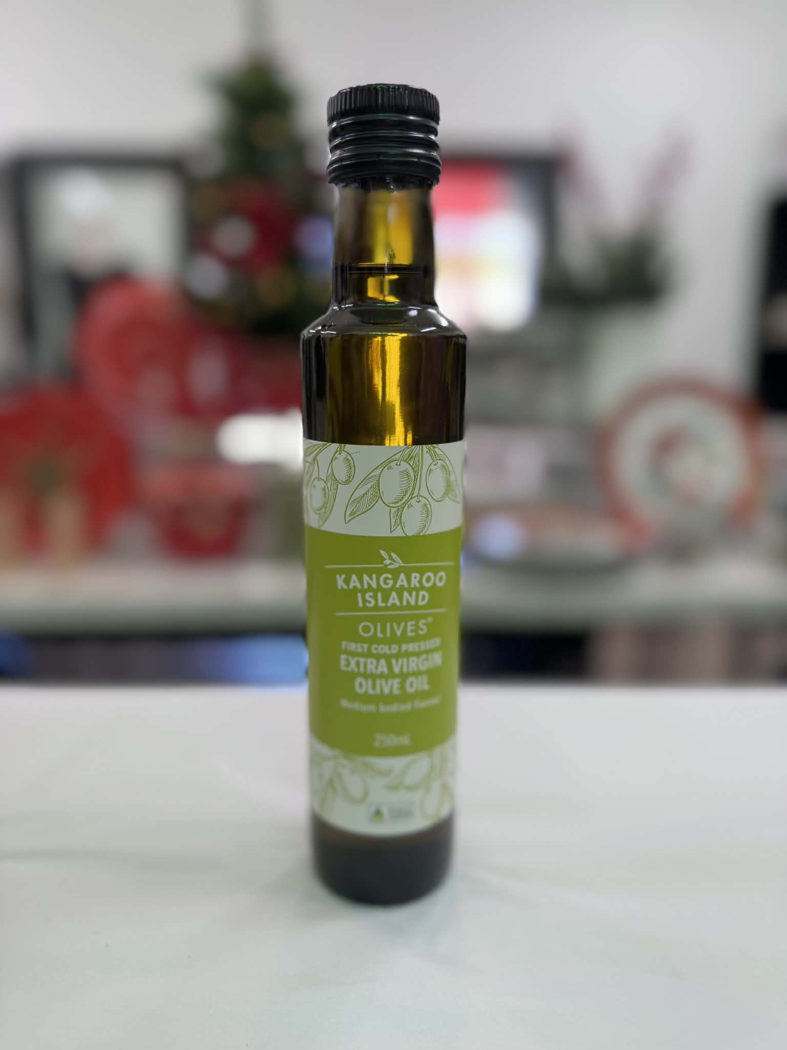 Kangaroo Island first cold pressed, extra virgin olive oil 250ml, medium bodied flavour.