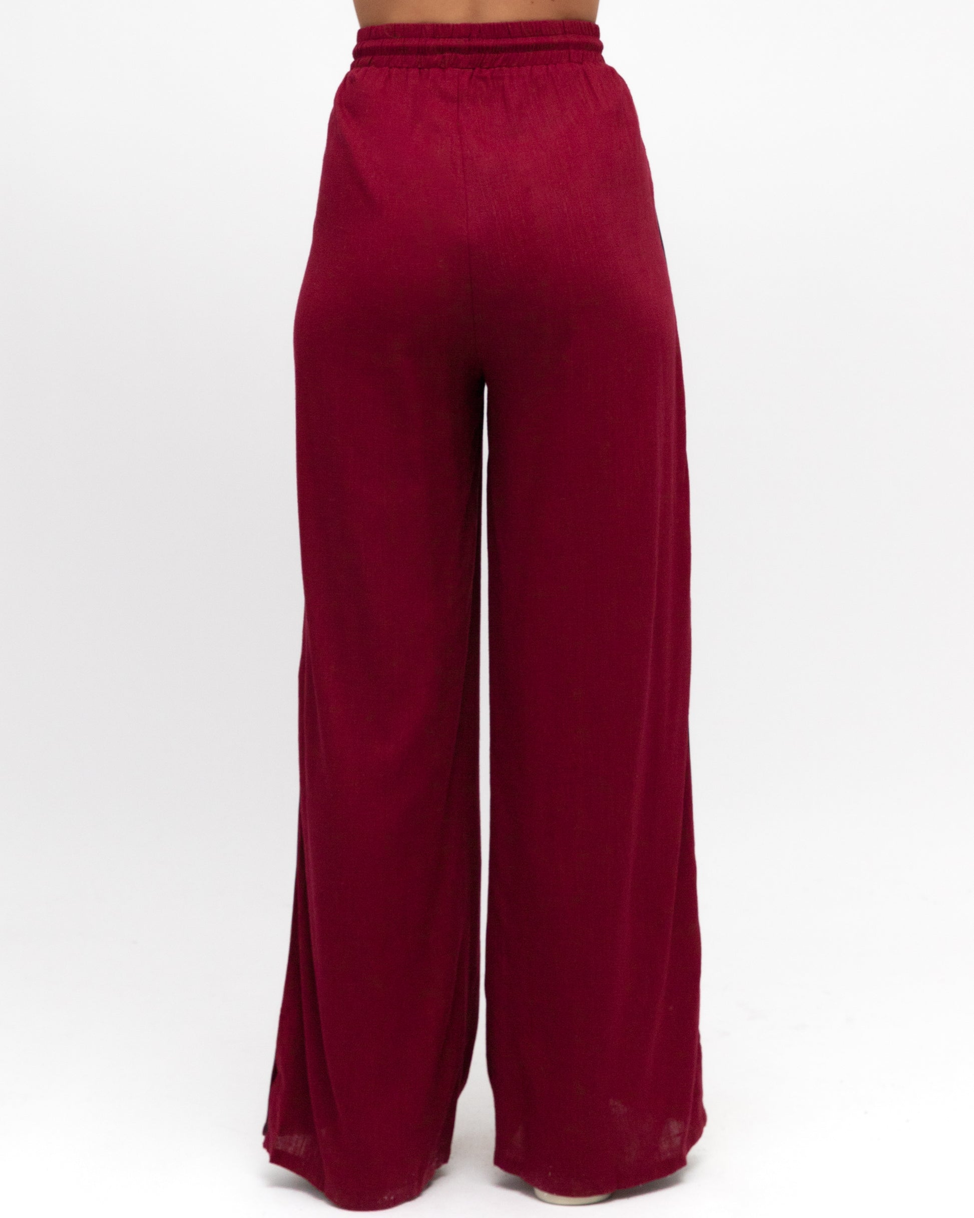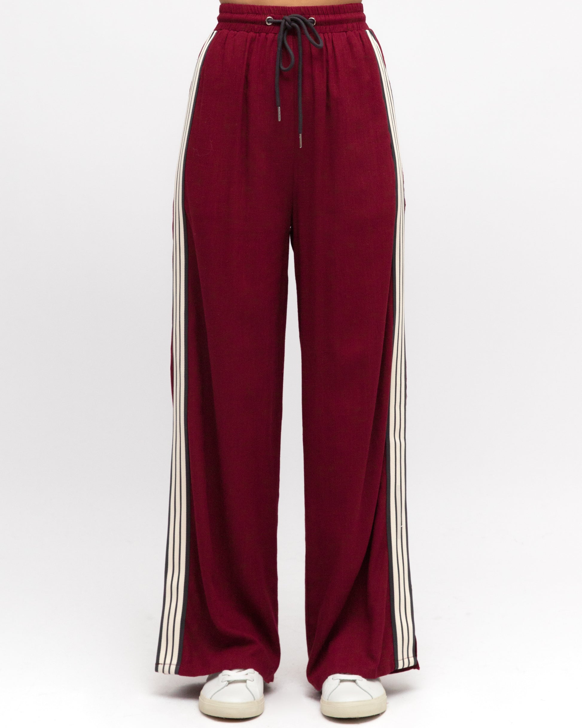 MAROON STRIPE DETAIL TIE WAIST PANTS