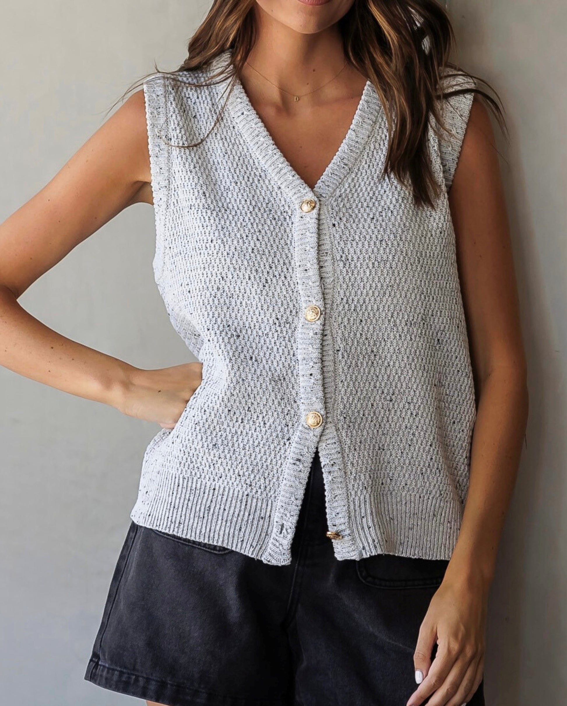 Clara V-neck, button down, knit, vest.